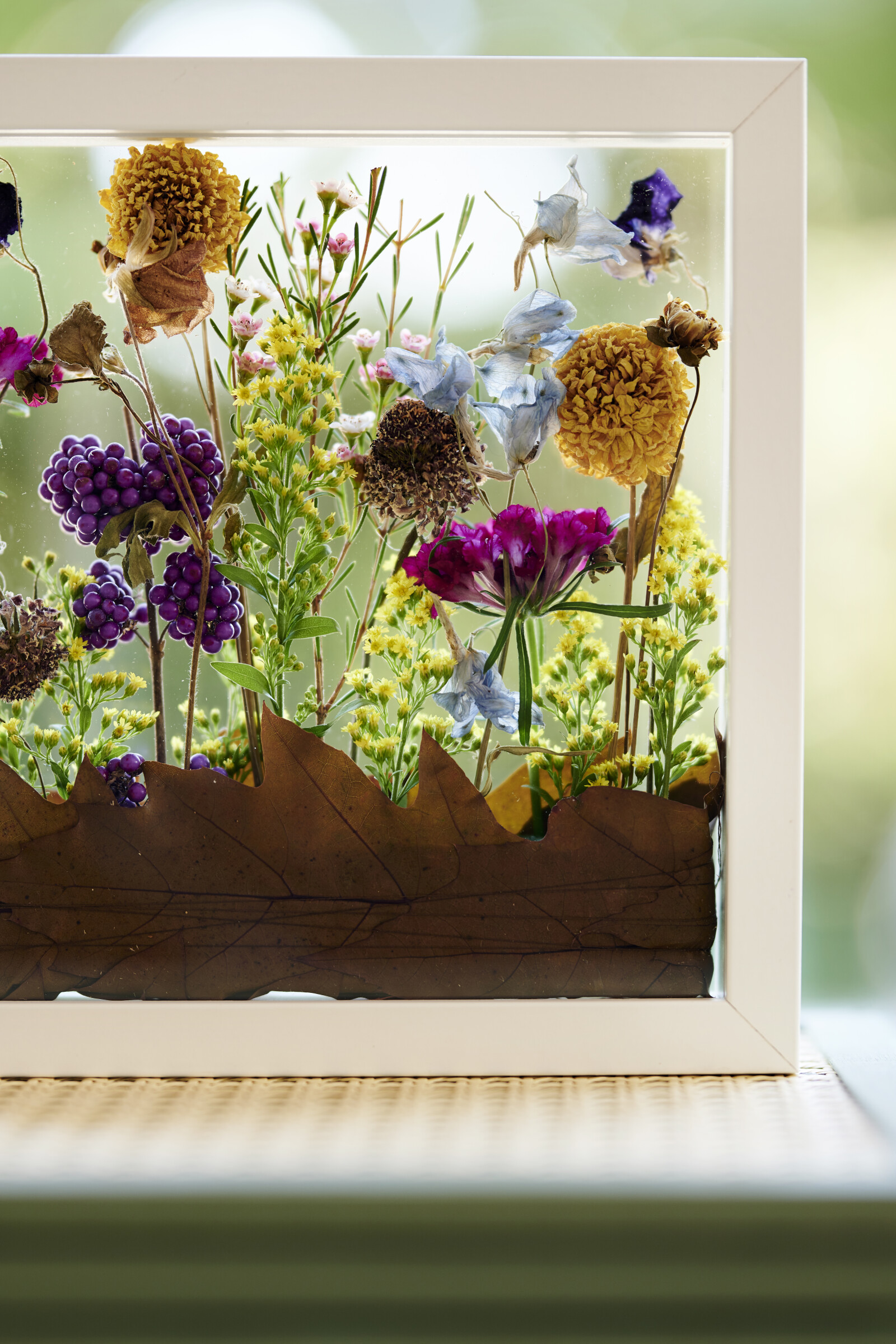 Callicarpa pysyy kauniina pitkään ja säilyttää värinsä. Huomaa: marjat ovat myrkyllisiä.