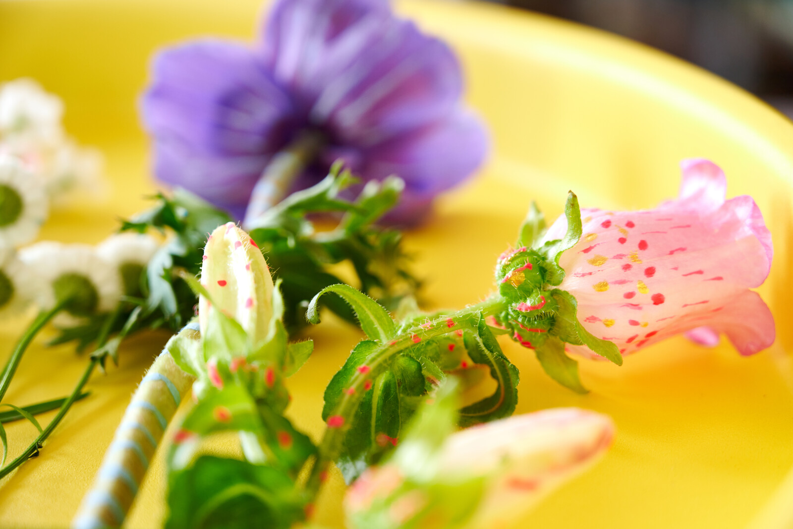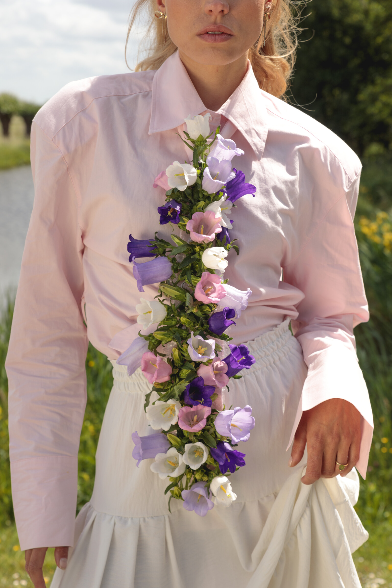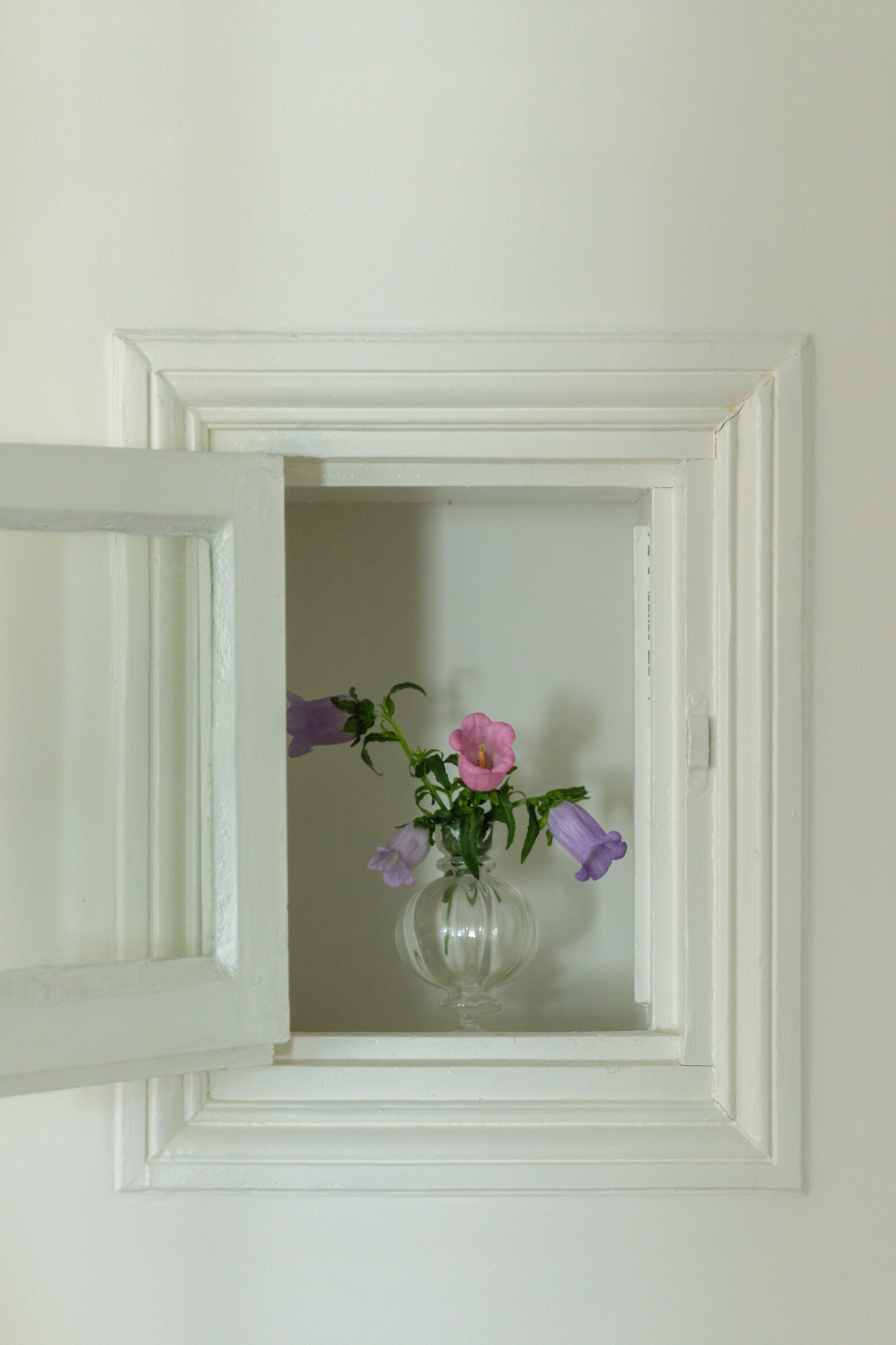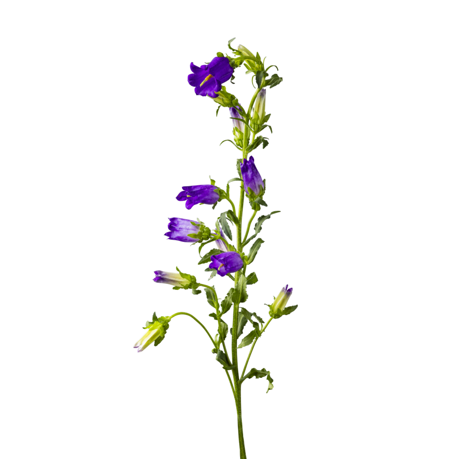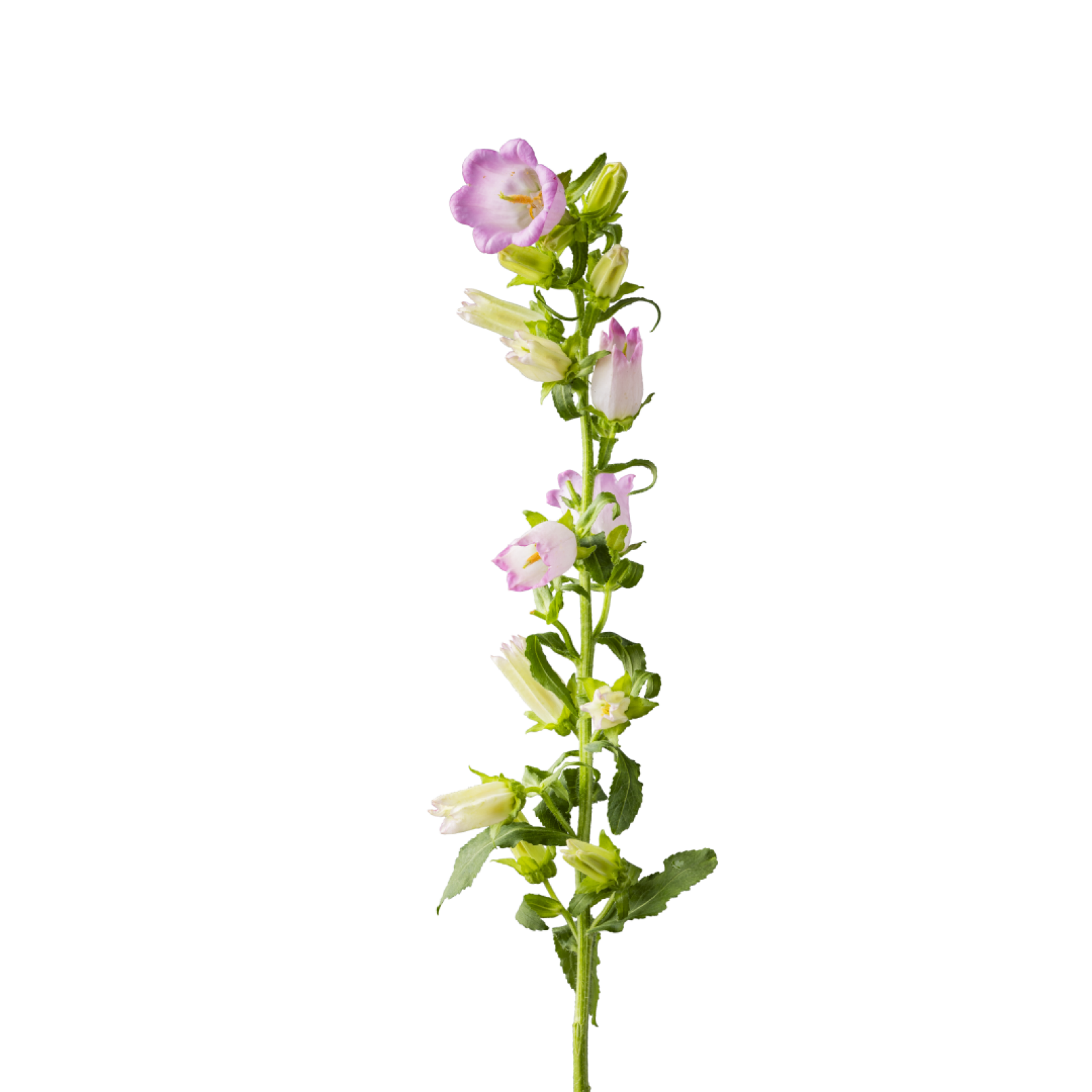 Campanulan sinisen, violetin, valkoisen ja vaaleanpunaisen eri sävyt lisäävät kimpun kauneutta ja iloa.