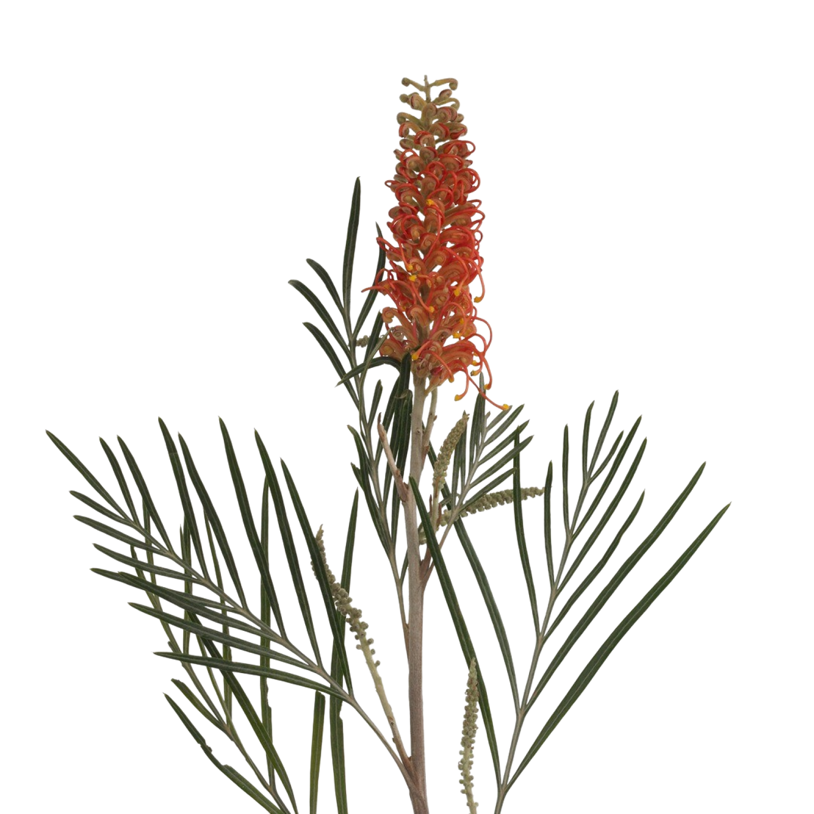 - Tyylikkäät sovelluksetGrevillea erottuu muista kukista ainutlaatuisen kukan muodon ja rakenteen ansiosta. Kukka koostuu hienojen, putkimaisten kukkien rykelmistä.