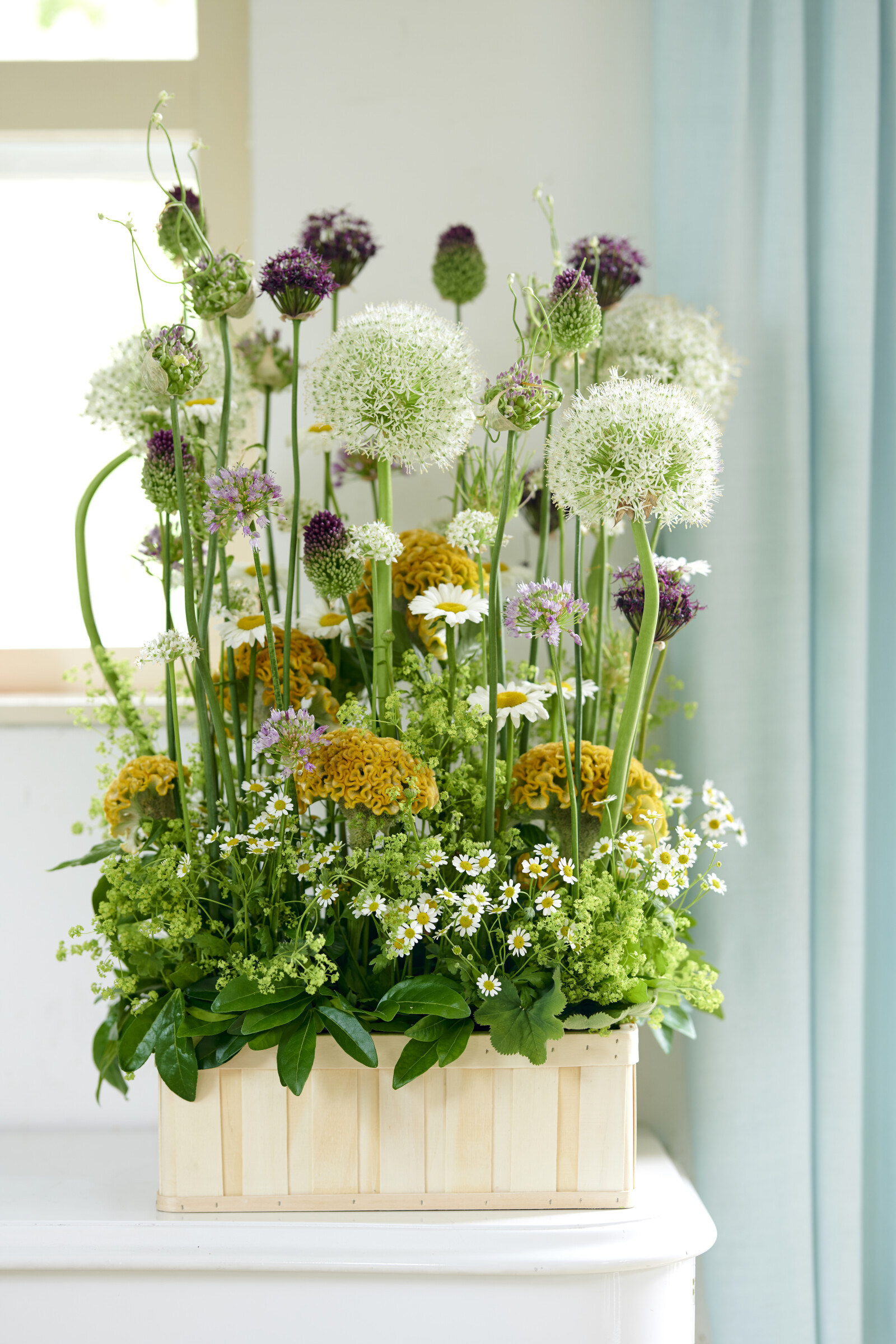 - Tyylikkäät sovelluksetSäteilevän valkoisten terälehtien ja keltaisen sydämen kukkien päiden ansiosta Leucanthemum tuo kukka-asetelmiin raikkaan ja ajattoman elementin.