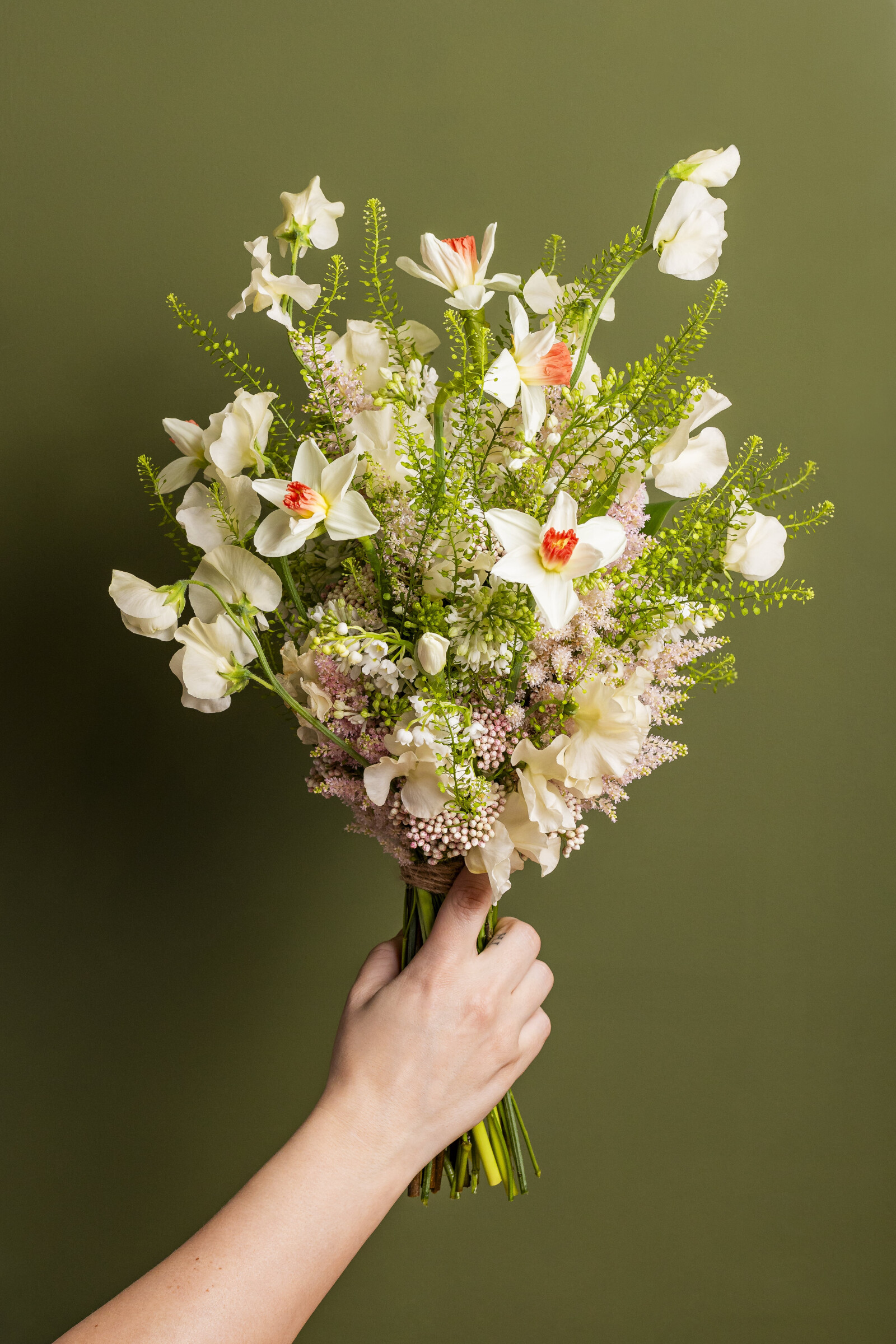 Narcissus on saatavana eri väreissä, kuten keltaisena, valkoisena, oranssina ja vaaleanpunaisena.