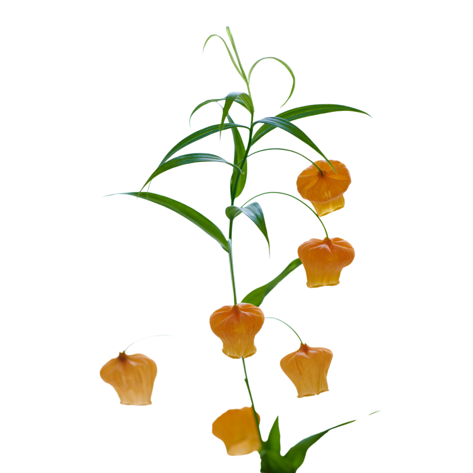- Tyylikkäät sovelluksetSandersonian kukat ovat tunnettuja niiden herkästä muodosta ja kirkkaan oranssista väristä. Kukat kasvavat hajallaan hoikan näköisen varren varren päällä ja roikkuvat kuin lyhdyt.