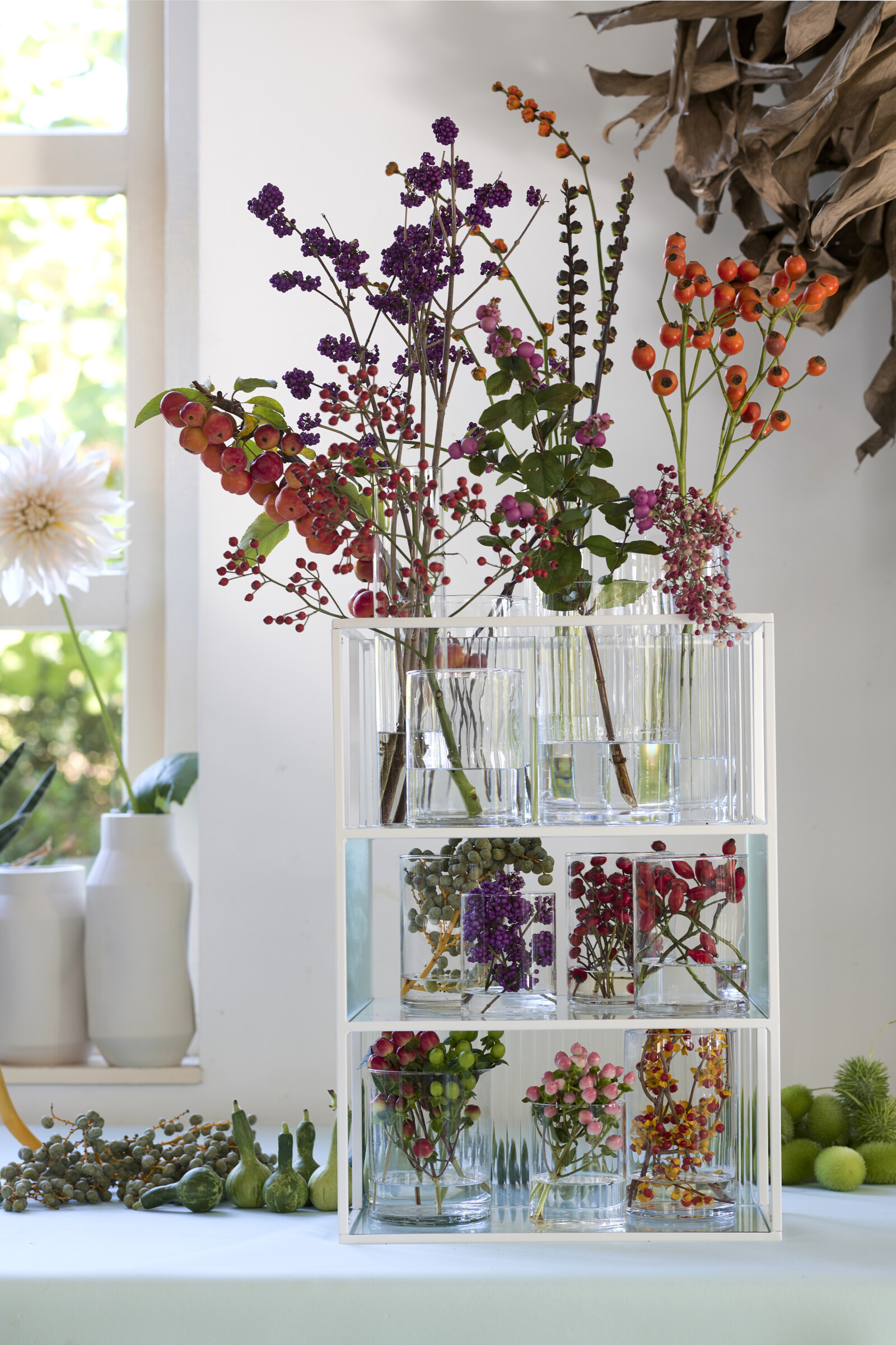 Symphoricarpos on saatavana valkoisen, vaaleanpunaisen ja purppuranpunaisen eri sävyissä.
