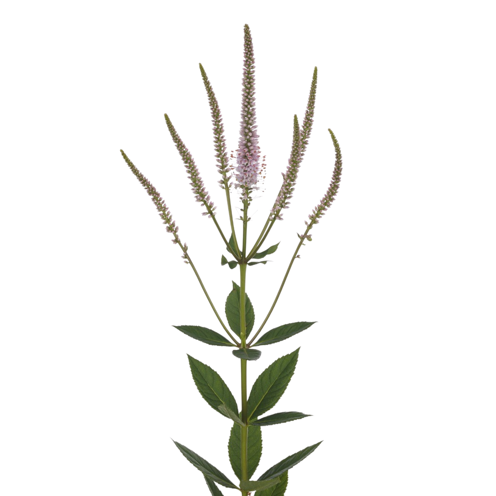 Tutustu Veronicastrumiin, joka tunnetaan Alankomaissa myös nimellä "Virginian Honorary Price". Tällä kukalla on pitkät, hoikat varret, jotka ovat haaroittuneet ja joiden päässä on pieniä pystysuorassa olevia piikkejä, jotka istuvat varren ympärillä kuin seppele. Tämä seppele on usein kerroksittain varren ympärillä.